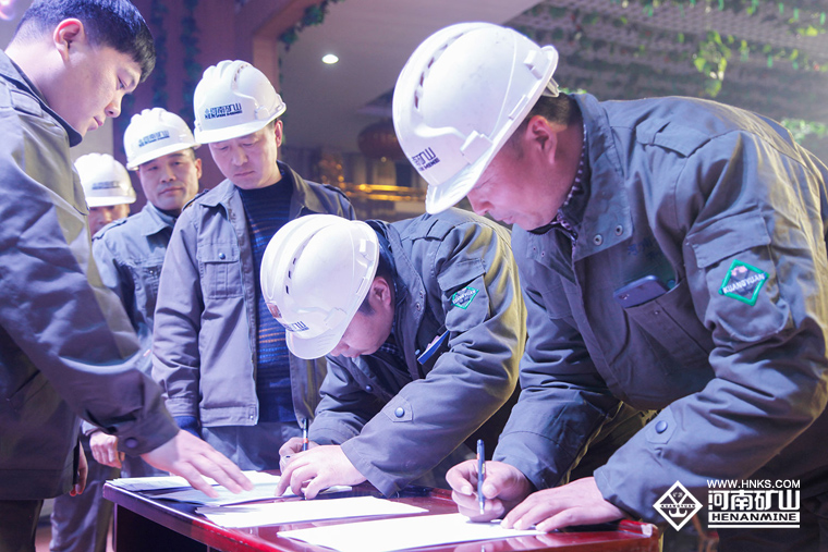 針對(duì)目前的冬季會(huì)戰(zhàn),主抓生產(chǎn)的副總韓慶祥與班組長(zhǎng)一起宣誓表態(tài)